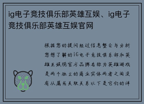 ig电子竞技俱乐部英雄互娱、ig电子竞技俱乐部英雄互娱官网