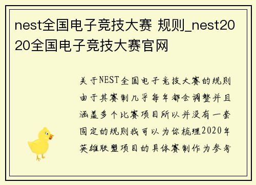 nest全国电子竞技大赛 规则_nest2020全国电子竞技大赛官网